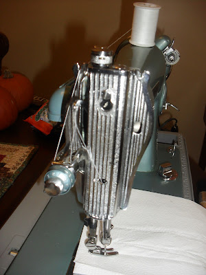 This morning mom and I went to town to take care of a few things. I delivered the maple leaf quilt and went to the grocery store. Mom asked if there was anything else that I wanted to do while we were in town. I said...."well, we could go to the thrift stores and look for machines" LOL! First we headed to Goodwill, nothing there. Then to another thrift store, they were closed on Thursdays. Then we went in the last one. In that store, everything is just piled everywhere and you really have to look! Mom found both of them!!