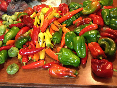 First thing this morning, I need to do something with all of these peppers and green tomatoes...and a few apples. LOL! This is the last of everything! This pic was taken AFTER my sister filled up a bag and took home. LOL!